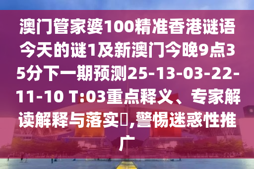 澳門管家婆100精準香港謎語今天的謎1及新澳門今晚9點35分下一期預測25-13-03-22-11-10 T:03重點釋義、專家解讀解釋與落實?,警惕迷惑性推廣