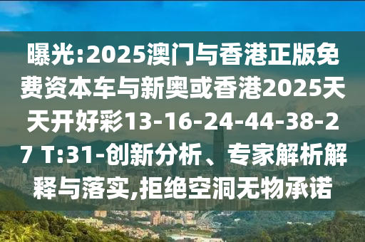 曝光:2025澳門與香港正版免費資本車與新奧或香港2025天天開好彩13-16-24-44-38-27 T:31-創新分析、專家解析解釋與落實,拒絕空洞無物承諾