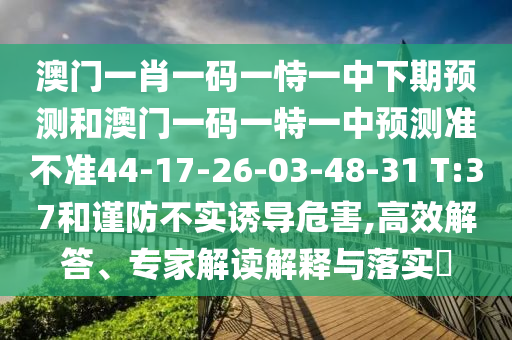 澳門一肖一碼一恃一中下期預測和澳門一碼一特一中預測準不準44-17-26-03-48-31 T:37和謹防不實誘導危害,高效解答、專家解讀解釋與落實?