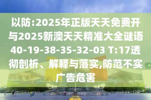 以防:2025年正版天天免費開與2025新澳天天精準大全謎語40-19-38-35-32-03 T:17透徹剖析、解釋與落實,防范不實廣告危害