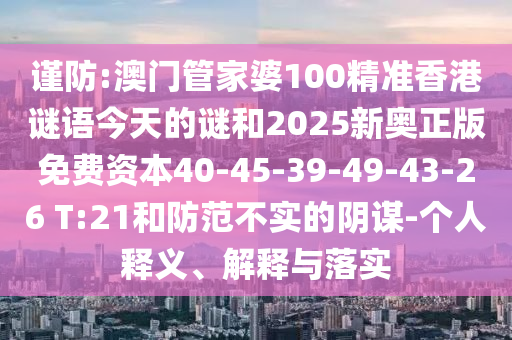 謹防:澳門管家婆100精準香港謎語今天的謎和2025新奧正版免費資本40-45-39-49-43-26 T:21和防范不實的陰謀-個人釋義、解釋與落實