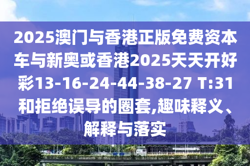 2025澳門與香港正版免費資本車與新奧或香港2025天天開好彩13-16-24-44-38-27 T:31和拒絕誤導的圈套,趣味釋義、解釋與落實