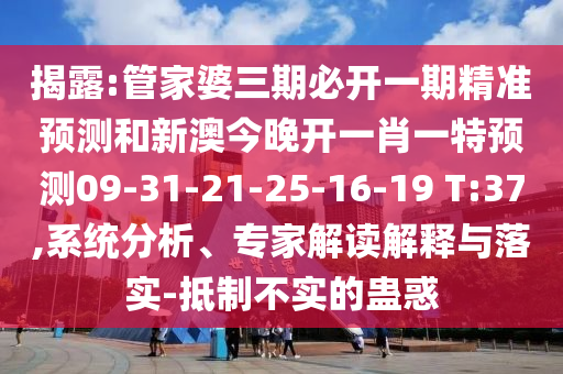 揭露:管家婆三期必開一期精準預測和新澳今晚開一肖一特預測09-31-21-25-16-19 T:37,系統分析、專家解讀解釋與落實-抵制不實的蠱惑