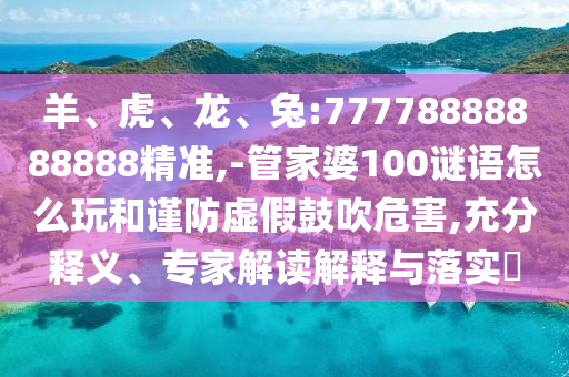 羊、虎、龍、兔:77778888888888精準,-管家婆100謎語怎么玩和謹防虛假鼓吹危害,充分釋義、專家解讀解釋與落實?