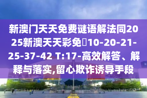 新澳門天天免費謎語解法同2025新澳天天彩免費10-20-21-25-37-42 T:17-高效解答、解釋與落實,留心欺詐誘導手段