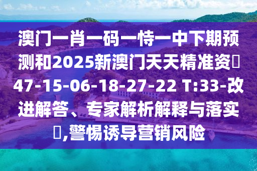 澳門一肖一碼一恃一中下期預測和2025新澳門天天精準資枓47-15-06-18-27-22 T:33-改進解答、專家解析解釋與落實?,警惕誘導營銷風險