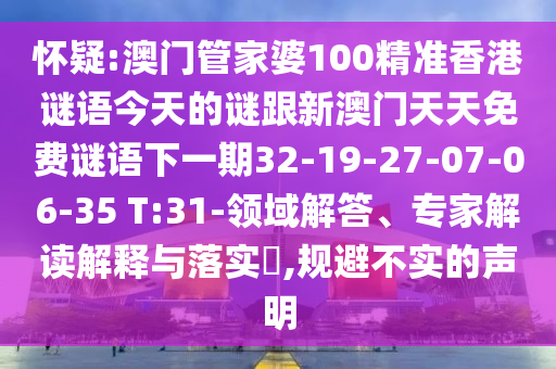 懷疑:澳門管家婆100精準香港謎語今天的謎跟新澳門天天免費謎語下一期32-19-27-07-06-35 T:31-領域解答、專家解讀解釋與落實?,規避不實的聲明