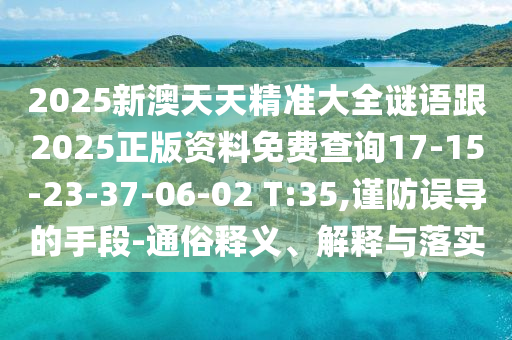 2025新澳天天精準大全謎語跟2025正版資料免費查詢17-15-23-37-06-02 T:35,謹防誤導的手段-通俗釋義、解釋與落實