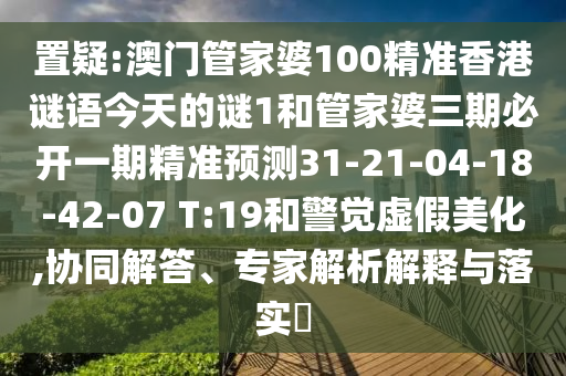 置疑:澳門管家婆100精準香港謎語今天的謎1和管家婆三期必開一期精準預測31-21-04-18-42-07 T:19和警覺虛假美化,協同解答、專家解析解釋與落實?