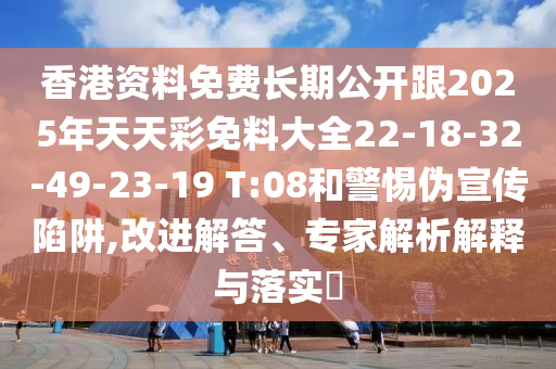 香港資料免費長期公開跟2025年天天彩免料大全22-18-32-49-23-19 T:08和警惕偽宣傳陷阱,改進解答、專家解析解釋與落實?