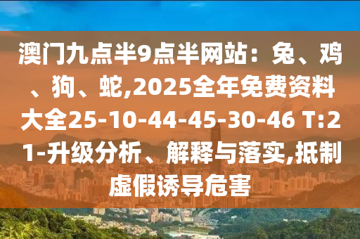 澳門九點半9點半網站:兔、雞、狗、蛇,2025全年免費資料大全25-10-44-45-30-46 T:21-升級分析、解釋與落實,抵制虛假誘導危害