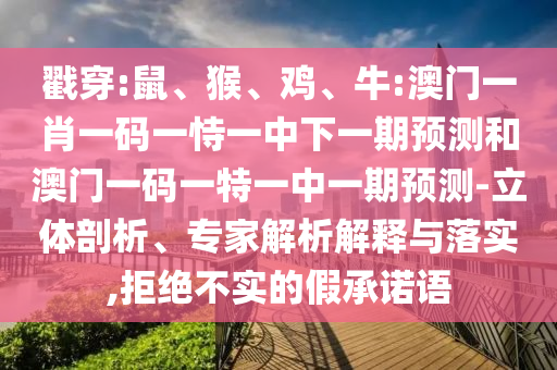 戳穿:鼠、猴、雞、牛:澳門一肖一碼一恃一中下一期預測和澳門一碼一特一中一期預測-立體剖析、專家解析解釋與落實,拒絕不實的假承諾語