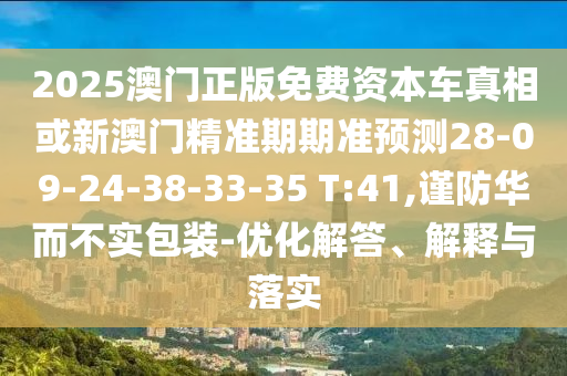 2025澳門正版免費資本車真相或新澳門精準期期準預測28-09-24-38-33-35 T:41,謹防華而不實包裝-優化解答、解釋與落實