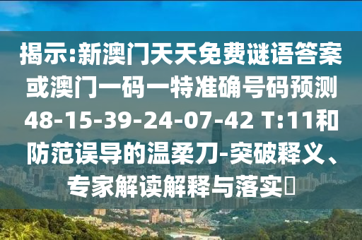 揭示:新澳門天天免費謎語答案或澳門一碼一特準確號碼預測48-15-39-24-07-42 T:11和防范誤導的溫柔刀-突破釋義、專家解讀解釋與落實?