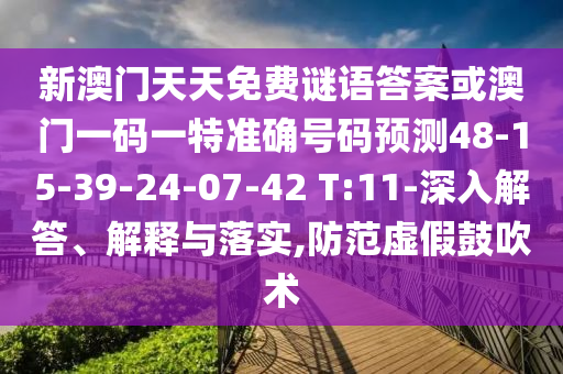 新澳門天天免費謎語答案或澳門一碼一特準確號碼預測48-15-39-24-07-42 T:11的深入解答、解釋與落實