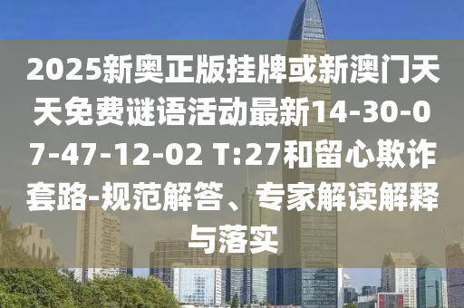 2025新奧正版掛牌或新澳門天天免費謎語活動最新14-30-07-47-12-02 T:27和留心欺詐套路-規范解答、專家解讀解釋與落實