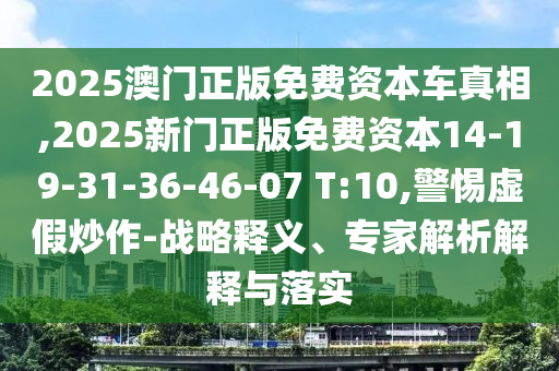 2025澳門正版免費資本車真相,2025新門正版免費資本14-19-31-36-46-07 T:10,警惕虛假炒作-戰略釋義、專家解析解釋與落實