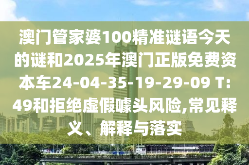 澳門管家婆100精準謎語今天的謎和2025年澳門正版免費資本車24-04-35-19-29-09 T:49和拒絕虛假噱頭風險,常見釋義、解釋與落實