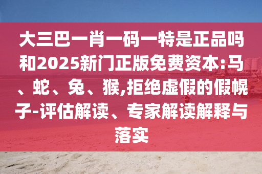 大三巴一肖一碼一特是正品嗎和2025新門正版免費資本:馬、蛇、兔、猴,拒絕虛假的假幌子-評估解讀、專家解讀解釋與落實