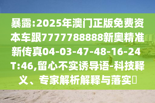 暴露:2025年澳門正版免費資本車跟7777788888新奧精準新傳真04-03-47-48-16-24 T:46,留心不實誘導語-科技釋義、專家解析解釋與落實?