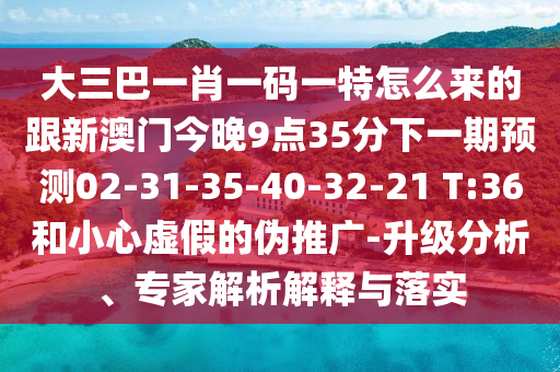 大三巴一肖一碼一特怎么來的跟新澳門今晚9點35分下一期預測02-31-35-40-32-21 T:36和小心虛假的偽推廣-升級分析、專家解析解釋與落實