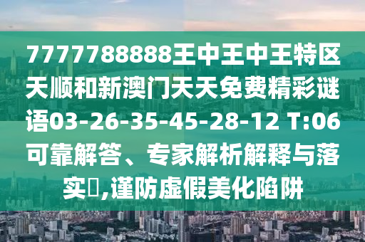 7777788888王中王中王特區天順和新澳門天天免費精彩謎語03-26-35-45-28-12 T:06可靠解答、專家解析解釋與落實?,謹防虛假美化陷阱