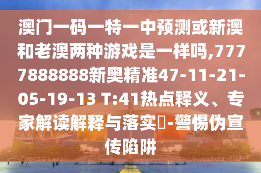 澳門一碼一特一中預測或新澳和老澳兩種游戲是一樣嗎,7777888888新奧精準47-11-21-05-19-13 T:41熱點釋義、專家解讀解釋與落實?-警惕偽宣傳陷阱