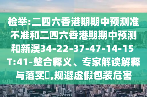 關于檢舉“二四六香港期期中預測準不準”和“新澳34-22-37-47-14-15 T:41”等相關內容的整合釋義、專家解讀與落實警惕虛假宣傳