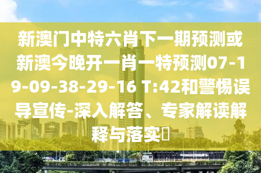新澳門中特六肖下一期預測或新澳今晚開一肖一特預測07-19-09-38-29-16 T:42和警惕誤導宣傳-深入解答、專家解讀解釋與落實?