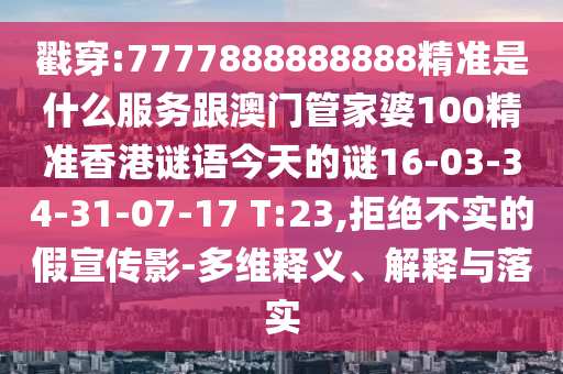 戳穿:7777888888888精準是什么服務跟澳門管家婆100精準香港謎語今天的謎16-03-34-31-07-17 T:23,拒絕不實的假宣傳影-多維釋義、解釋與落實