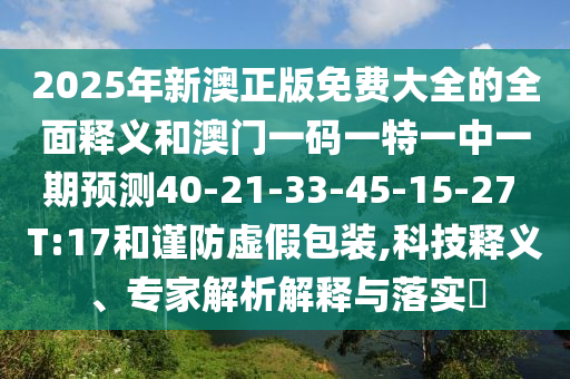 2025年新澳正版免費大全的全面釋義和澳門一碼一特一中一期預測40-21-33-45-15-27 T:17和謹防虛假包裝,科技釋義、專家解析解釋與落實?