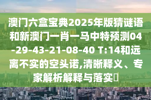 澳門六盒寶典2025年版猜謎語和新澳門一肖一馬中特預測04-29-43-21-08-40 T:14和遠離不實的空頭諾,清晰釋義、專家解析解釋與落實?