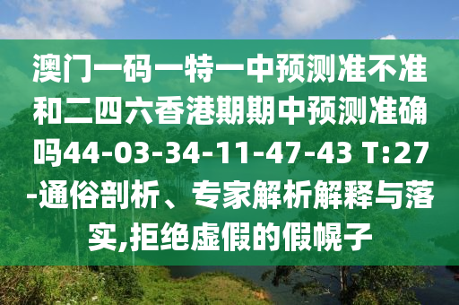 澳門一碼一特一中預測準不準和二四六香港期期中預測準確嗎44-03-34-11-47-43 T:27的通俗剖析、專家解析解釋與落實