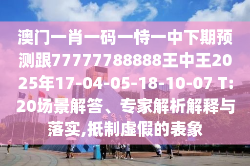 澳門一肖一碼一恃一中下期預測跟77777788888王中王2025年17-04-05-18-10-07 T:20場景解答、專家解析解釋與落實,抵制虛假的表象