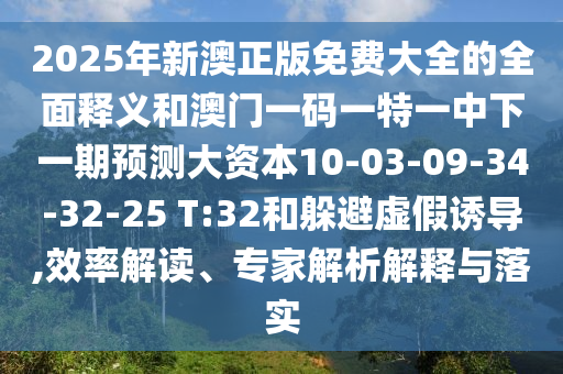 2025年新澳正版免費大全的全面釋義和澳門一碼一特一中下一期預測大資本10-03-09-34-32-25 T:32和躲避虛假誘導,效率解讀、專家解析解釋與落實