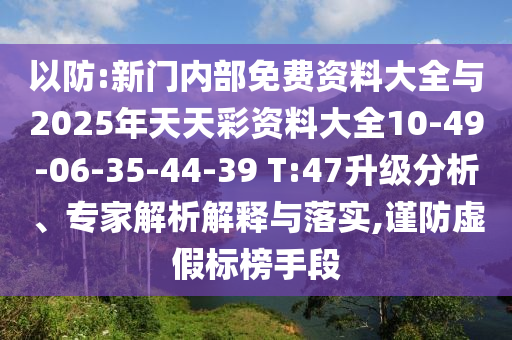 以防:新門內部免費資料大全與2025年天天彩資料大全10-49-06-35-44-39 T:47升級分析、專家解析解釋與落實,謹防虛假標榜手段