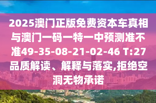 2025澳門正版免費資本車真相與澳門一碼一特一中預測準不準49-35-08-21-02-46 T:27品質解讀、解釋與落實,拒絕空洞無物承諾