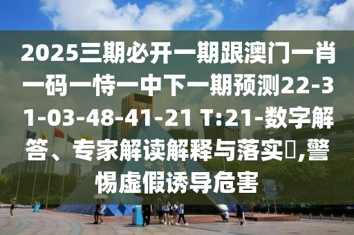 2025三期必開一期跟澳門一肖一碼一恃一中下一期預測22-31-03-48-41-21 T:21-數字解答、專家解讀解釋與落實?,警惕虛假誘導危害