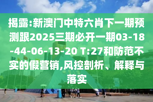 揭露:新澳門中特六肖下一期預測跟2025三期必開一期03-18-44-06-13-20 T:27和防范不實的假營銷,風控剖析、解釋與落實