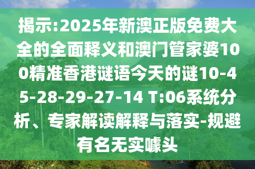 揭示:2025年新澳正版免費大全的全面釋義和澳門管家婆100精準香港謎語今天的謎10-45-28-29-27-14 T:06系統分析、專家解讀解釋與落實-規避有名無實噱頭