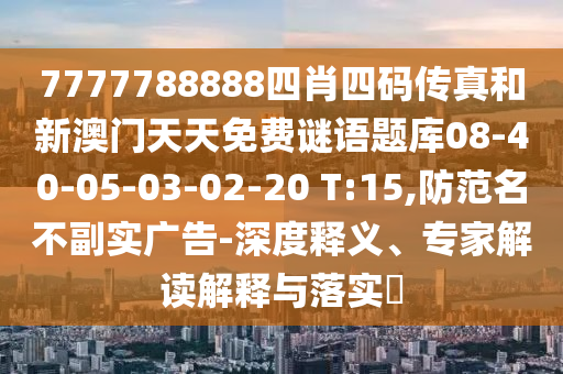 7777788888四肖四碼傳真和新澳門天天免費謎語題庫08-40-05-03-02-20 T:15,防范名不副實廣告-深度釋義、專家解讀解釋與落實?