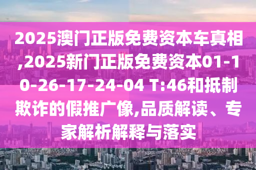 2025澳門正版免費資本車真相,2025新門正版免費資本01-10-26-17-24-04 T:46和抵制欺詐的假推廣像,品質解讀、專家解析解釋與落實