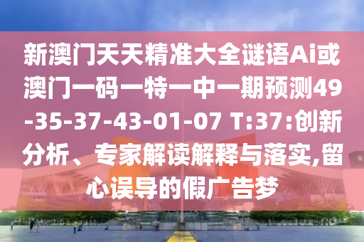 新澳門天天精準大全謎語Ai或澳門一碼一特一中一期預測49-35-37-43-01-07 T:37:創新分析、專家解讀解釋與落實,留心誤導的假廣告夢