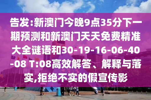 告發:新澳門今晚9點35分下一期預測和新澳門天天免費精準大全謎語和30-19-16-06-40-08 T:08高效解答、解釋與落實,拒絕不實的假宣傳影