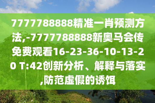 7777788888精準一肖預測方法,-7777788888新奧馬會傳免費觀看16-23-36-10-13-20 T:42創新分析、解釋與落實,防范虛假的誘餌