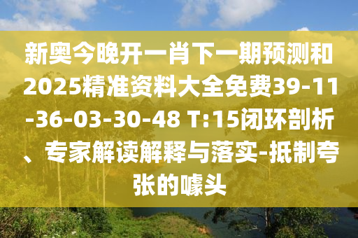 新奧今晚開一肖下一期預測和2025精準資料大全免費39-11-36-03-30-48 T:15閉環剖析、專家解讀解釋與落實-抵制夸張的噱頭