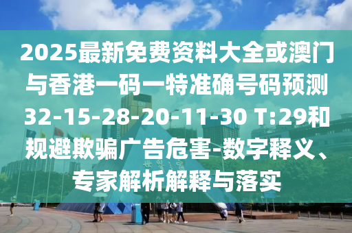2025最新免費資料大全或澳門與香港一碼一特準確號碼預測32-15-28-20-11-30 T:29和規避欺騙廣告危害-數字釋義、專家解析解釋與落實
