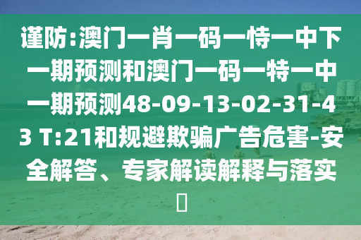 謹防:澳門一肖一碼一恃一中下一期預測和澳門一碼一特一中一期預測48-09-13-02-31-43 T:21和規避欺騙廣告危害-安全解答、專家解讀解釋與落實?