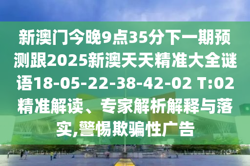 新澳門今晚9點35分下一期預測跟2025新澳天天精準大全謎語18-05-22-38-42-02 T:02精準解讀、專家解析解釋與落實,警惕欺騙性廣告