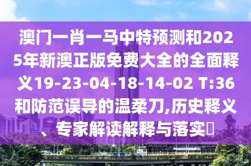澳門一肖一馬中特預測和2025年新澳正版免費大全的全面釋義19-23-04-18-14-02 T:36和防范誤導的溫柔刀,歷史釋義、專家解讀解釋與落實?